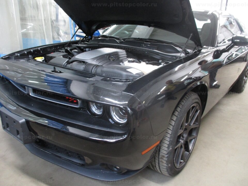 Предлагаем Вашему вниманию фотообзор по кузовному ремонту а/м Dodge Challenger. Данный аппарат был приобретён владельцем на аукционе в Соединённых Штатах Америки. Машина по документам 2016 года выпуска. Под капотом нашей R/T версии двигатель V8 с объемом 5,7 литров, который выдает 376 л/с и 548 Н•м крутящего момента в пике! После всех процедур "растоможки" машину сразу же привезли в Кузовную станцию Pit-Stop Color для того, чтобы убрать все косяки, из-за которых, собственно, машина и оказалась на продаже на том самом аукционе. Повреждения на нём были неслабые. Из больных мест — это сильно помятая крыша и разбитое заднее стекло. Кроме того, была помята крышка багажника и сломано антикрыло. На задних крыльях и переднем бампере также имелась масса повреждений, царапин и сколов. Крышку багажника и заднее стекло клиент привёз самостоятельно. Нам предстояло отремонтировать: крышу, боковую сторону автомобиля и заменить крышку багажника со стеклом. На работу по кузову у нас ушло букваль