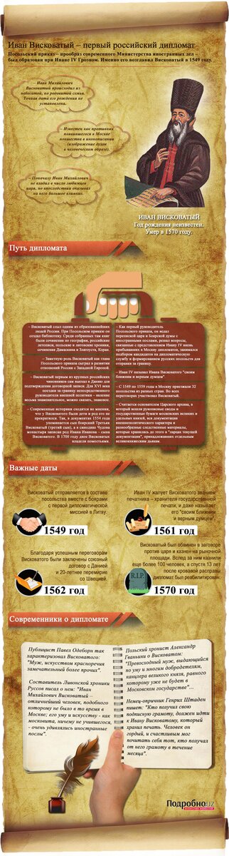 Наш первый рассказ посвящен Ивану Висковатому, которого считают первым российским дипломатом, заложившим основы этой профессии в РФ.