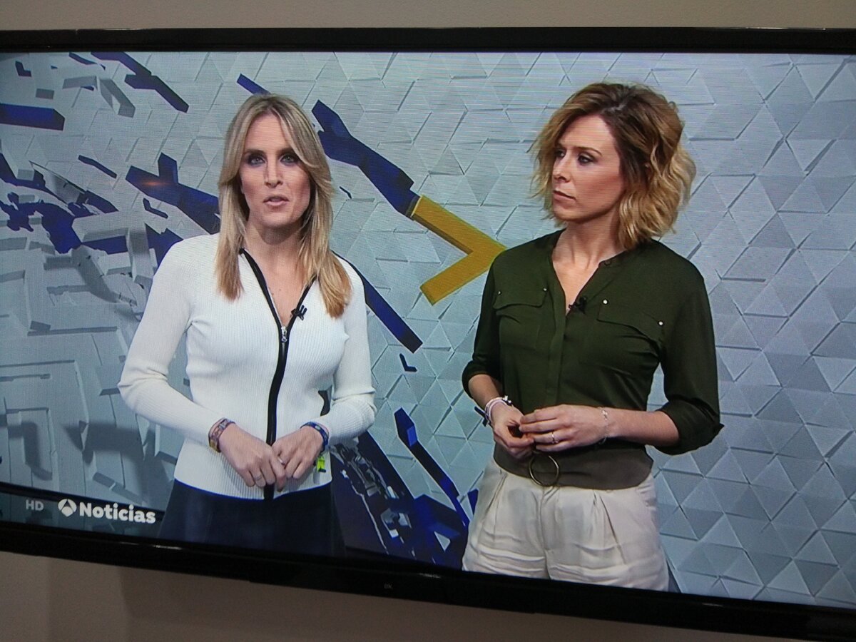 Пока готовились к эфиру, обсуждали с визажистом испанских телеведущих. И я вспомнила, что у меня в телефоне целый набор фотографий с экрана телевизора. Мы в Барселоне подсели на канал Antena3. Ни словечка по-испански не понимаем. Но раз уж мы испанское ТВ обсуждали с визажистом, какая разница, о чем они там говорили. Куда важнее - как выглядят ведущие. Девушки, которые ведут новости утром, могут быть в трикотажных кофточках, могут быть прямо в свитерах, могут быть в неформальных джинсах, могут быть в босоножках. Мне очень понравилась Maria Jise Saez. И вот как-то вижу – она за столом сидит: хоть и в футболке, но в жилете и в пиджаке. Думаю: о, сегодня прямо цивильно одета девушка. Ан-нет! Встала - и оказалась в тертых джинсах с закатанными штанинами :) И вот как-то вижу – она за столом сидит: хоть и в футболке, но в жилете и в пиджаке. Думаю: о, сегодня прямо цивильно одета девушка. Ан-нет! Встала - и оказалась в тертых джинсах с закатанными штанинами :) Утреннее ток-шоу кр