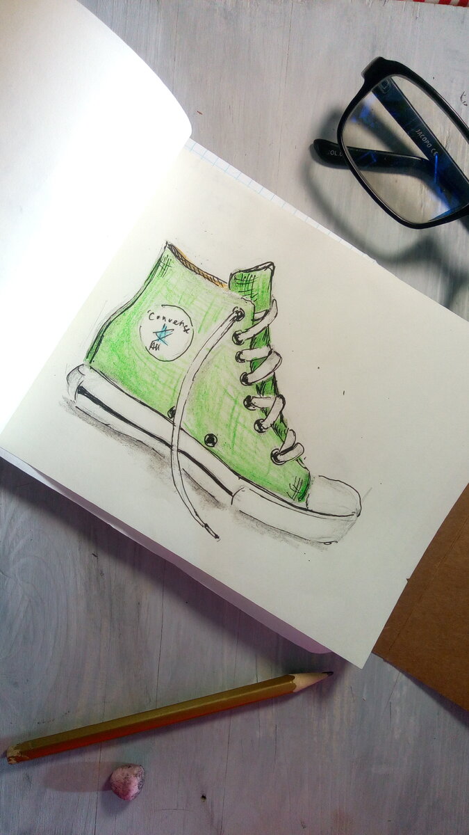 Начинается дизайн одежды с изучения и рисования этой одежды. Предлагаю постичь азы fashion-скетчинга. Начнем с обуви, а точнее с вот такого яркого кеда. Поехали!