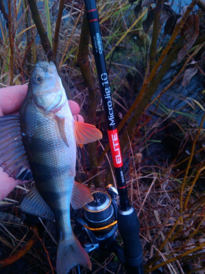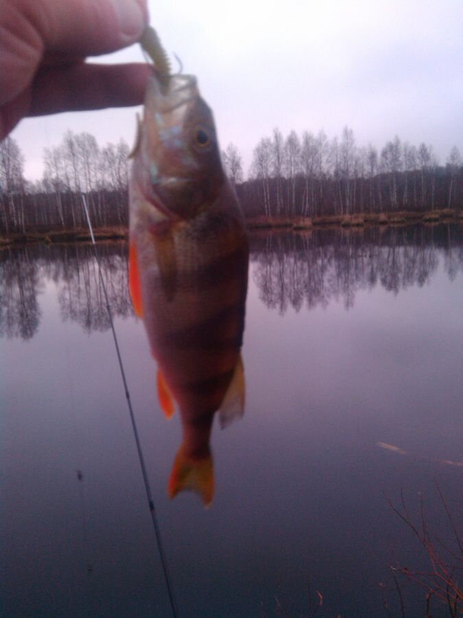 Статья на портале РНарод Сегодня решил сходить половить окуня (хоть и писал, что сезон ловли на спиннинг закрыл) на торф разработки. Погода отличная +9, туман как в Лондоне. На водоем прибыл в 7 утра. С мдж судьбу испытывать не стал и решил сразу начать ловлю с отводного поводка. Резина LJ Chunk Tail 2" цвет SB05, Tioga 05,00 цвет PA01. Самые ходовые цвета и размеры на данном водоеме. Прокидал пару перспективных мест на глубоких точках, где в последний раз ловил окуня, поклевок нет. Перешел на более мелкое место и сразу получил уверенную поклевку которую я реализовал. Окунь спортивного варианта. Затем не большое затишье и снова поклевка, мимо. С одного места было по 5-7 поклевок, но вялые, окунь нежно теребил приманку за хвост. На отводной поймал 4 окуней. Вскоре мне надоело терпеть его издевательства и я перешел на мдж. Вес от 2-5 гр. Поклевки увереннее, по все под низ челюсти, как будто он накрывает приманку сверху. На мдж было примерно 10 поклевок, реализовал 3. В 10 часов начал