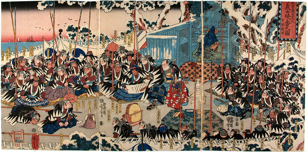 Ронины — бывшие самураи, которые не смогли уберечь от гибели своего покровителя, сюзерена. Так случилось и с самураями господина Асано Наганори. Он был участником так называемого «Инцидента Ако». В ходе него Асано напал с мечом на Киру Есинака в замке Эдо, но не убил его, а лишь ранил. Асано тут же был арестован и приговорен сёгуном к ритуальному самоубийству — харакири. Все его самураи потеряли господина. Причиной мести Асано стали публичные оскорбления Киры, которого назначили советником Асано в вопросах подготовки намечавшегося визита представителей японского императора. Кира требовал деньги и подношения за его услуги, на что получил отказ. После нападения Асано в день визита императорских послов Кира Есинака не был никак осужден. Для ронинов, оставшихся без покровителя, это стало поводом для отмщения. Они дали клятву отомстить смертью за смерть, зная, что за этим последует смертельный приговор. 30 января 1703 года настал день для реализации плана, который они готовили около двух ле
