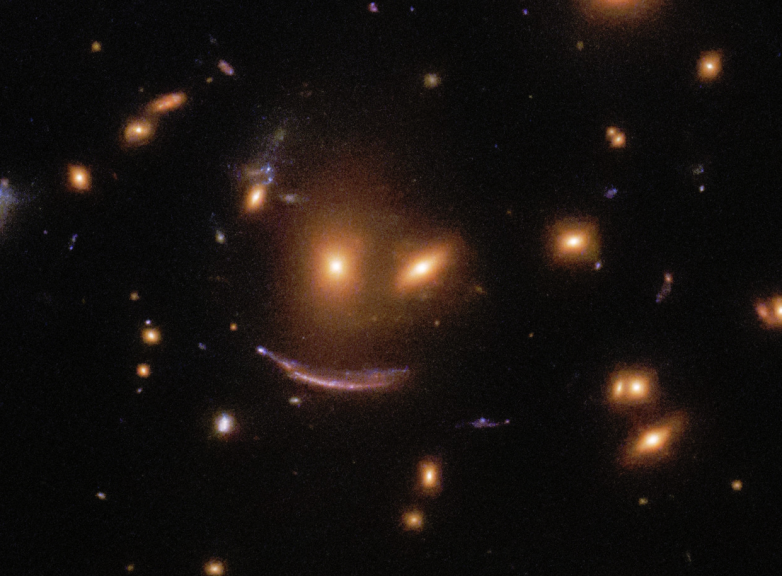 Когда НАСА смотрит в небо с помощью любого из своих телескопов, всегда есть шанс, что ученые обнаружат то, чего никогда не видели прежде. Иногда они видят новорожденные звезды, а иногда они видят огромные тени. Однако это, вновь захваченное изображение от Хаббла, показывает то, чего вы, вероятно, никогда не ожидаете увидеть в глубине космоса: улыбающееся лицо. Изображение, которое, по словам НАСА, было снято одной из широкоугольных камер телескопа Хаббла, показывает целую кучу далеких галактик всех форм и размеров, но одна конкретная часть изображения обязательно попадется вам на глаза. Там, внизу, большое светлое улыбающееся лицо. «Чуть ниже центра находится галактика, похожая на улыбающееся лицо», - пишет НАСА. «Две желтых капли висят на широкой дуге света. Нижняя галактика в форме дуги имеет характерную форму галактики с гравитационной линзой - ее свет прошел вблизи массивного объекта на пути к нам, в результате чего он искажается и растягивается по форме ». Эта гравитационная линза