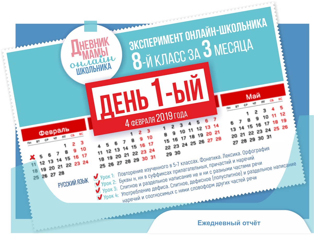 Цель эксперимента: показать на личном примере, что наши дети могут всего 3 месяца в году учиться, а всё остальное время ЖИТЬ, ТВОРИТЬ, ЧУДЕСИТЬ) Кому нравится наша идея? Присоединяйтесь :) Приветствую! Для тех, кто впервые на моём канале кратко о сути эксперимента: Я - Евгения, мама восьмиклассника Артёма, который уже второй год не ходит в школу, а учится онлайн. Сейчас перед ним стоит задача: за 3 месяца изучить школьную программу восьмого класса и по всем предметам выполнить все домашние задания и контрольные работы. Мы разработали план действий на эти три месяца, составили для него личную модульную 2-х уровневую программу, по которой он и будет двигаться в своём эксперименте. В конце статьи оставлю ссылки, где Вы сможете увидеть наш план, программу на текущую неделю, а также где я рассказываю, в связи с чем вообще возникла такая необходимость. Мы с сыном договорились, что каждый учебный день я буду делать отчёт о проделанной им работе. Для него это новый опыт и в каком-то смысле -
