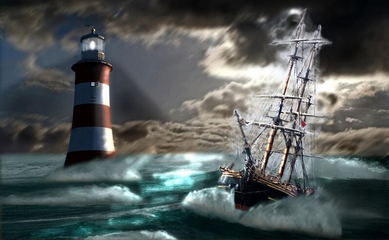 Свет маяка волна размывает, Редкое судно в порт попадает, Море волнуется - ждите беды, Очень опасна стихия воды.