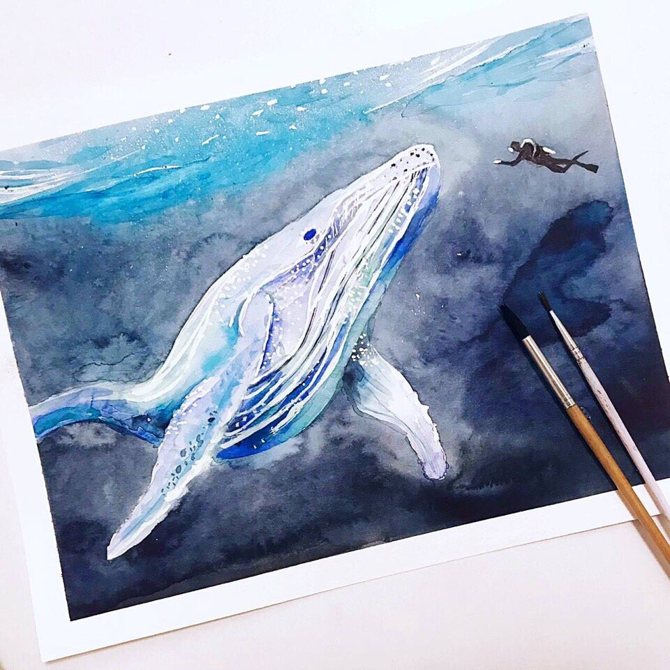С чего начать и что выбрать нарисовать? - вот действительно важные вопросы, чтобы удачно выбрать сюжет! Попробуйте начать с морских тематик, где есть только синие оттенки акварели - таким образом вы сможете избежать грязных разводов, так как при смешивании синие оттенки не дают грязных разводов.