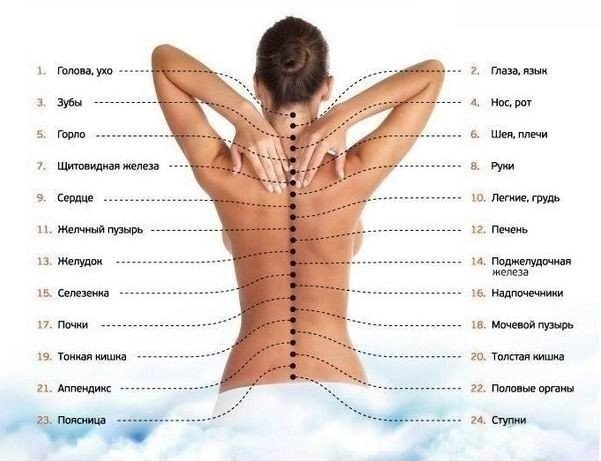 Грудной отдел – как правило, когда имеет напряжение и страх предательства, испытывает небезопасность и зажимает мышцы спины - «создавая мышечный панцирь», защищаясь от удара ножом в спину