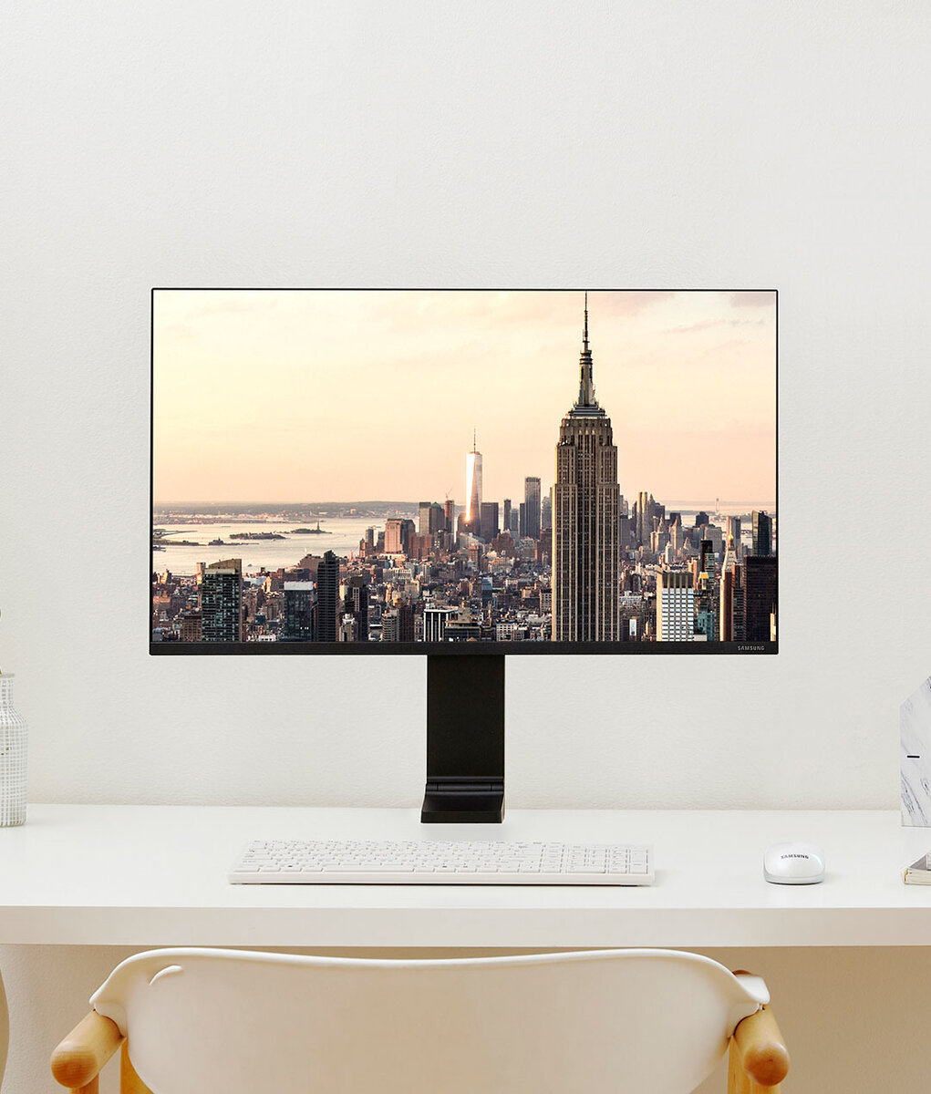 Уникальная особенность новинки - возможность регулировки положения и возможность крепления монитора к стене. Монитор можно опустить на стол, наклонить, поднять или отодвинуть к стене. Провода находятся внутри конструкции, что придает аккуратности рабочему месту. Комплектации Доступны две модели на выбор - на 27 и 31.5".
