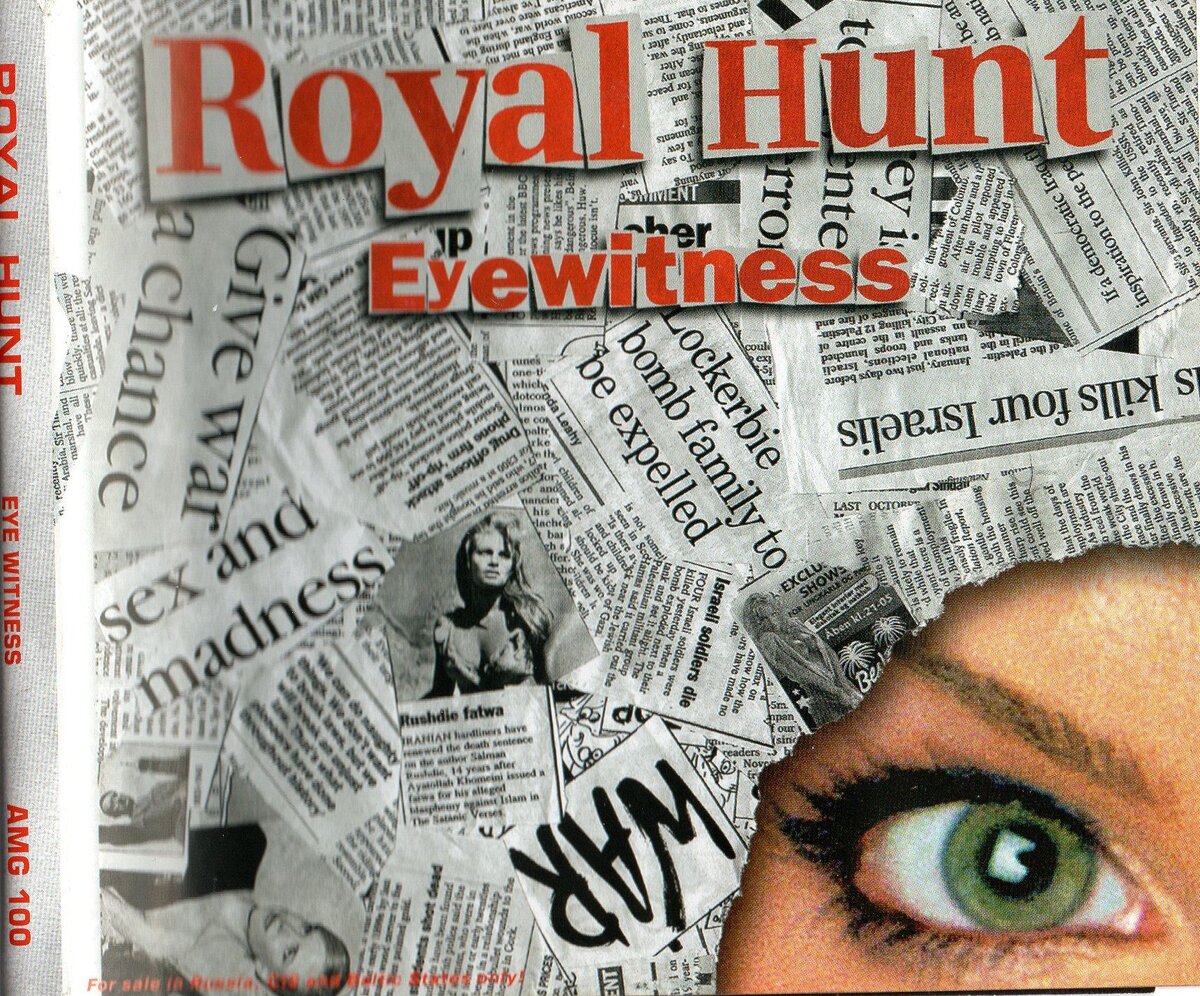 Eyewitness - загадочный альбом датской группы Royal Hunt, которого нет ни на Яндекс Музыке ни на YouTybe. Не знаю с чем это связано, но сегодня речь пойдёт именно об этом альбоме. Данный альбом у меня находится на CD, который находился по сей день в защитной плёнке :) Я такой человек, который старается оставить вещь до последнего в отличном качестве. Я уверен что многие люди до сих пор не вытаскивают пульт из пакетика... Что-то понесло не туда. У меня находится обычное издание, на котором записано 10 композиций. Мне очень понравилось, что они сделали переходы между треками "без шовными", то есть, после каждой песни были какие-то звуки: шаги, скрип двери, звук моря и т.д. Мне всегда нравилось у Royal Hunt вокал Джона Уэста и виртуозная игра на клавишных нашего земляка и основателя группы Андре Андерсена. Eyewitness - это не просто progressive metal альбом, а с примесью hard rock'a. Первый трек альбома "Hunted" (текст песни представлен выше) начинается с болтовни, которая со временем п