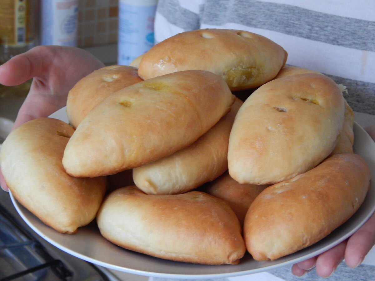 1 стакан молока, полстакана подсолнечного масла (или растопленного сливочного, кому как нравится), 1 чайная ложка соли, 2 столовые ложки сахара, одно яйцо. Молоко подогреть, чтобы было теплое, в него влить масло, всыпать соль и сахар. Потом отдельно (в стакане или миске) немного размешать яйцо (до пены взбивать не нужно!) и влить его в молоко. Дальше в эту теплую смесь просеиваем немного муки и в муку всыпаем пакетик сухих дрожжей (стандартный, 12 гр). Размешиваем. А вот потом нужно сеять муку и замешивать. Тесто должно быть довольно густым, чтобы можно было месить рукой. Месить нужно до тех пор, пока тесто не начнет отлипать от рук. Для ориентира - у меня на стакан молока уходит приблизительно около 1 кг муки (разная мука уходит по-разному). Тесто должно получиться мягкое, эластичное и не прилипать. Готовое тесто ставим в тепло (зимой я ставлю на ковш с горячей водой), накрываем пакетом или пленкой (чтобы не сохло) и полотенцем. У меня оно обычно подходит в течение часа. Оно должн