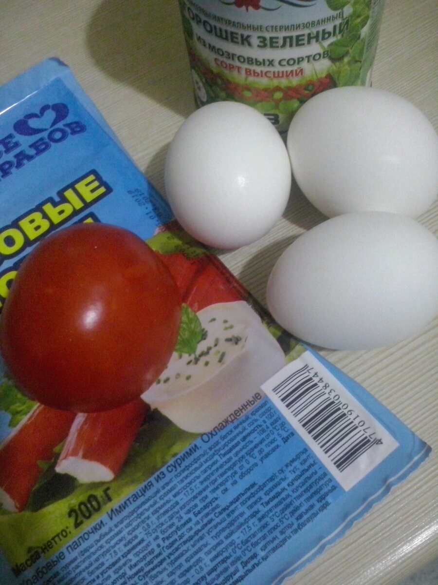 Еда, не спорю, не очень полезная. Но мы, люди, выросшие в 90-х, вполне их ели и едим. Не каждый день конечно. Пригодятся крабовые палочки для приготовления нескольких закусок. Я их готовлю для того, чтобы разнообразить нашу еду на каждый день. Это в 90-е крабовый салат был главным украшением праздничного стола. Сегодня вполне будничное блюдо. Салаты я делаю в трех вариантах. Потребуется: 1 упаковка крабовых палочек или мяса (большая) 3 сваренных вкрутую яйца 1 стакан кукурузы или зеленого горошка майонез Крабовые палочки и яйца мелко нарезать, чем мельче, тем сочнее будет салат. Добавить по своему вкусу кукурузу либо зеленый горошек. Заправить майонезом. Я в салат с горошком режу еще несколько маринованных корнишонов. Еще недавно появился такой вариант (для любителей помидоров) – нарезать крабовые палочки (3 шт.), яйца (1 шт.) и помидоры (1 шт.), добавить щепотку сухого чеснока, заправить майонезом. Делаю обычно одну порцию, чтобы сразу съесть. Помидоры дают сок, поэтому такой салат до