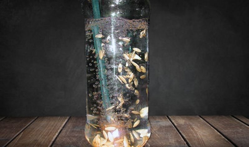 Чего только не придумывают растениеводы для увеличения всхожести семян. Их замачивают в воде с добавлением различных стимуляторов роста, стратифицируют холодом, а ещё барботируют. Этот процесс заключается в обработке посадочного материала кислородом, в результате чего на семенах разрушается защитный слой. Кроме того, барботирование способствует тому, что сила семени передаётся ростку. Какой инвентарь необходимо подготовить для проведения этой процедуры и как её правильно провести? Нам понадобится компрессор от аквариума и стеклянная банка ёмкостью не более одного литра. Из этого прибора и тары мы будем сооружать импровизированный барботер. Для этого банку, чуть более, чем на половину, заполняем прохладной водой. Температура воды при этом должна составлять не более +20 С. Туда же высыпаем семена, объём которых не должен превышать четверти от объёма воды. Опускаем трубку от компрессора в банку с водой и семенами, включаем прибор и оставляем работать на определённое количество времени. Дл