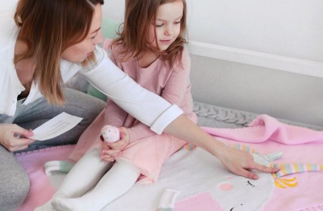 Деток от года можно увлечь исследованием пледа. Расскажите малышу кто изображен на пледе, как называется персонаж, где он живет, какую шубку носит. Покажите его части тела — животик, голову, ушки, глазки, хвостик, лапы и другие детали. Расскажите маленький стишок, сказку, спойте песенку. Кроха будет рад познакомиться с новой информацией. Именно в этот период малыш делает первые попытки повторять за мамой звуки и слова. Общение важно, но мамам бывает сложно находить темы для разговора с ребенком. Ведь он еще даже не способен ответить. Плед с героем послужит хорошим предметом для изучения и рассказов.
