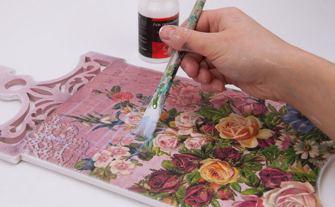 «По завершению работы обязательно покройте изделие лаком...» — фраза, появляющаяся почти в каждом мастер-классе. Этот скромный материал играет большую роль в самых разнообразных техниках. Лаки – средства, защищающие декорированную поверхность от воздействий внешней среды, раскрывающие глубину оттенков и подчеркивающие детали работы. Акриловый лак изготавливается на основе прозрачной акриловой смолы без применения пигментов, в состав добавляются сгущающие и стабилизирующие вещества. ◉ Художественные и универсальные акриловые лаки Художественный акриловый лак имеет вязкотекучую консистенцию, слабый запах, после высыхания лак становится водостойким, совершенно бесцветным и прозрачным. Художественные акриловые лаки, в первую очередь, предназначены для покрытия живописных работ и в качестве промежуточного слоя. А также используются для разведения акриловых красок, вживления распечаток (глянцевый лак) и в качестве грунтовки. ◉ Для усиления блеска красок желательно использовать глянцевы