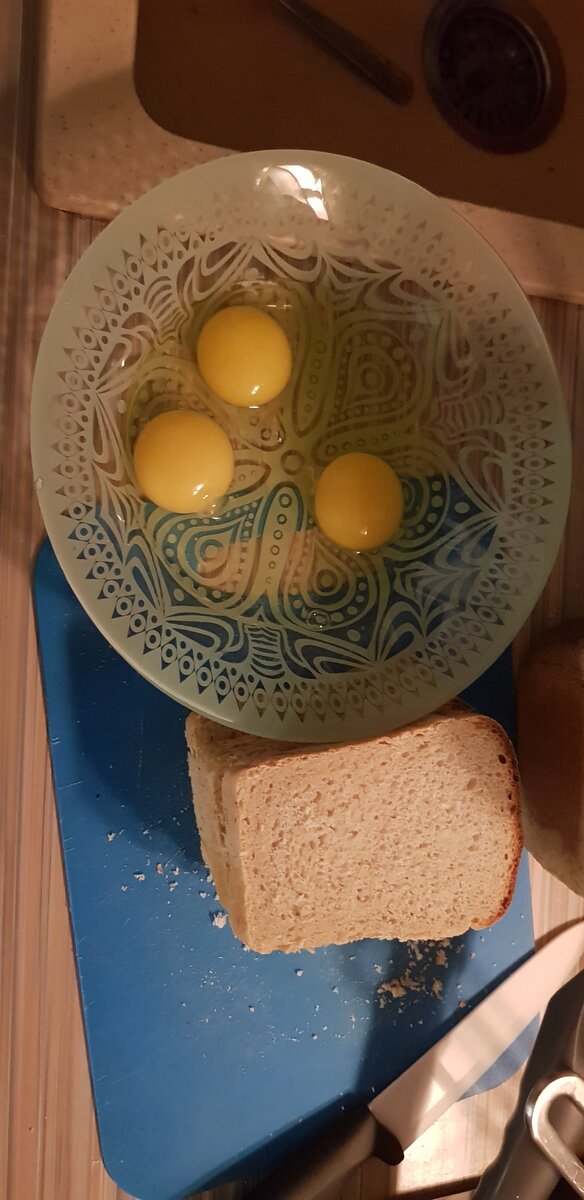 Уж у нас сильно морозит.. в магазин так просто не сбегать...далеко и детей я надолго не оставляю одних... вот пришлось собрать ужин и удивлять ребятню из того что есть на скорую руку.. Было бы все проще да папа наш уехал в командировку... вы не думайте, кушать есть что, но только вечером они уже ни супа не захотели ни гречки с сосисками... Сделала аппетитные гренки с яйцом и молоком... отварила последние сосиски и оставалась свекла от вчерашнего салата. Готовим гренки: Все смешиваем. Берем остатки батона и обмакиваем в нашей смеси. Отправляем на сковороду с небольшим количеством подсолнечного масла. Обжариваем с двух сторон до золотистой корочки. Снимаем и выкладываем на бумажное полотенце, что бы лишнее масло впиталось... Собираем нашу тарелку: сосиски порезала кусочками и свеклу ломтиками, немного сметаны или майонеза, что вам больше нравиться...и пару гренок. Вот такой чудо ужин для детей у меня получился... верю скажете могла там салат сделать из свеклы или что посущественнее,