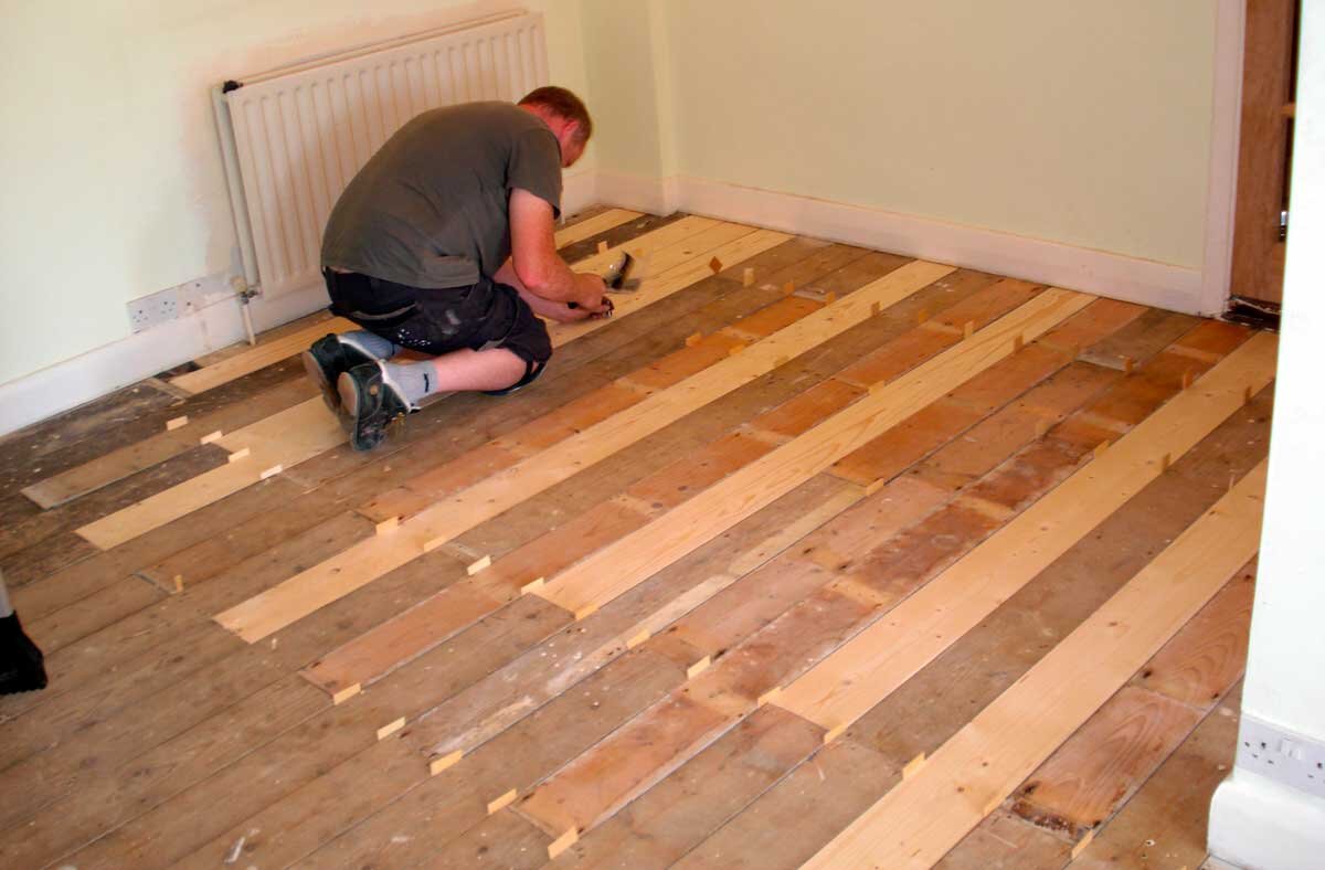 Начинать ремонт паркетного пола следует с удаления деревянных планок, которые износились больше всего. Если снять их целыми невозможно, то сначала планки можно разбить долотом или другим металлическим инструментом, а затем достать по частям. Оставшиеся под паркетными планками «гнезда» очищаются от грязи остатков клея или металлических крепежей, если при установке паркета использовались именно они.