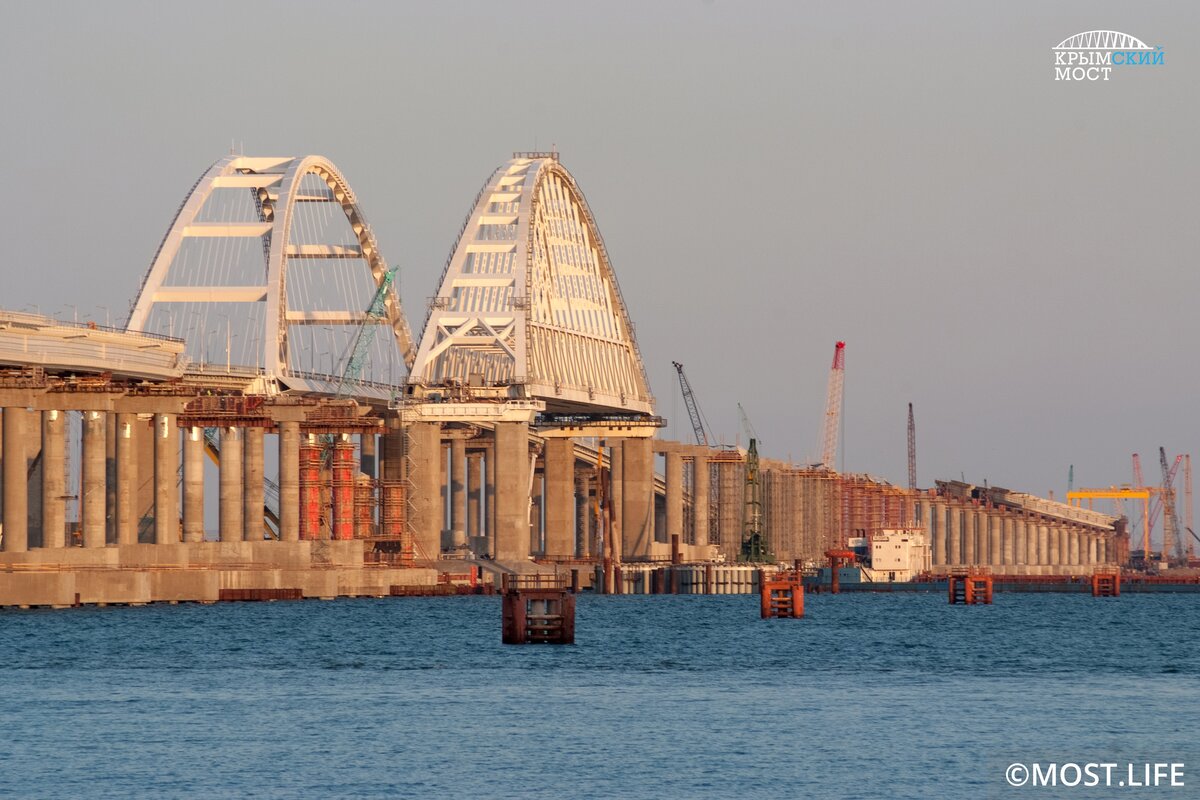 Справка Крымский мост — самый длинный в России и Европе. Его протяженность — 19 км. Эксплуатация автодорожной части началась 16 мая 2018 года и идет в штатном режиме. За 8 месяцев по мосту в обе стороны проехало около 3,5 млн транспортных средств, в том числе более 175 тысяч грузовиков. Среднесуточный трафик — около 15 тысяч транспортных средств. Это выше прогнозных оценок (12–13 тысяч автомобилей). Рекорд суточного трафика по Крымскому мосту был поставлен в воскресенье 12 августа: за 24 часа по нему проехали 33 359 автомобилей. Строительство железнодорожной части Крымского моста идет по графику. Свайные работы выполнены в полном объеме. Суммарно на 8 участках под железную дорогу погружено почти 3 тысячи свай. Готовы все железнодорожные опоры — 307 конструкций высотой от 5 до 35 метров. Укрупнительная сборка пролетных строений — это 160 тысяч тонн металла — проведена более чем на 90%. На готовые участки мостового полотна уложено 11 из 38 км рельсошпальной решетки. На объекте работае