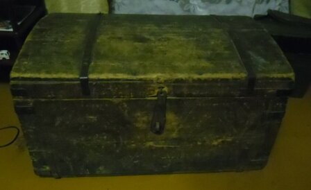 1. Этому сундуку более 100 лет. Он сделан из липовой доски, поэтому достаточно легкий, что упростило его переселение с дачи в квартиру. Вот так он выглядит.