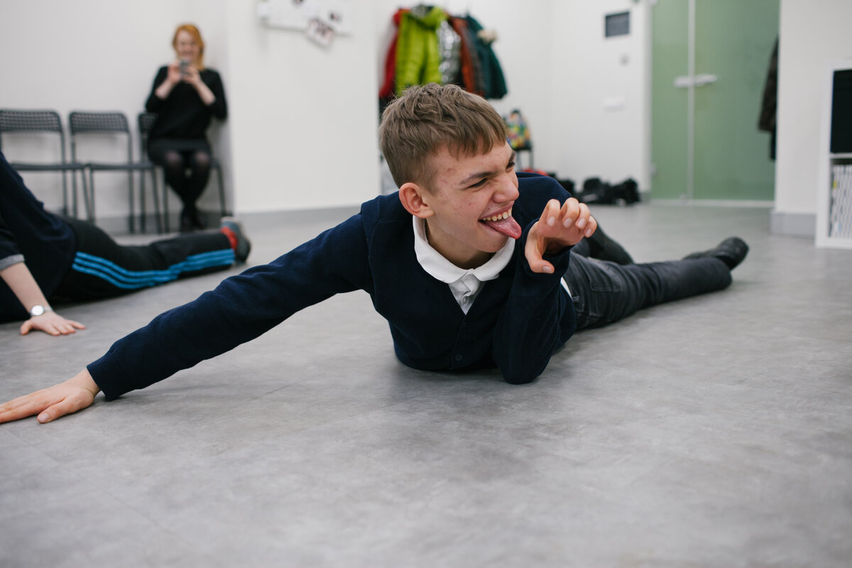 Два года назад Ваня стал участником инклюзивной театральной студии #ЗАживое. Здесь он учится играть в этюдах под руководством режиссёра, управлять своей речью и движениями, но главное – общаться со сверстниками.