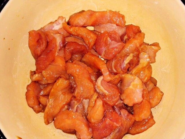 Китайское блюдо, как видно из названия поста. Ни разу не острое, но, при этом, все равно весьма вкусное. Да и готовится за считанные минуты. Для приготовления потребуется: Свинина нежирная — 500 гр Вешенки — 200 гр Крахмал — 3 ч.л. Соевый соус — 1 ст.л. Устричный соус — 3 ст.л. Мирин* — 5 ст.л. Белый молотый перец — 1 ч.л. Чесночная паста — 1 ст.л. Куриный бульон — 100 мл Вода — 50 мл Растительное масло *Вместо Мирина можно использовать Шаосинское вино или херес. Мясо нарезаем небольшими кусочками, перекладываем в какую-нибудь посудину, заливаем туда соевый соус и засыпаем одной чайной ложкой крахмала. Хорошенько перемешиваем и оставляем мариноваться на 10 минут. Тем временем нарезаем вешенки на небольшие куски. Делаем соус путем смешивания бульона, устричного соуса, Мирина и белого перца. В воке разогреваем растительное масло, в течение тридцати секунд обжариваем чесночную пасту, после чего закидываем мясо и жарим минуту. Добавляем грибы и жарим две минуты. Заливаем соус и готовим е