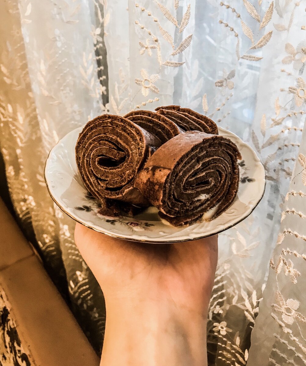 КБЖУ (всего рулета): Жиры: 20 грамм; Углеводы: 88 грамм; Белки: 26 грамм. Калорийность всего рулета: 637 ккал! Ингредиенты: Мука - 3-4 ст ложки; 114 ккал Яйца куриные - 2 шт; 129 ккал Какао порошок - 1 ст- ложка; 12 ккал; Молоко - 100 мл; 53 ккал Сгущенка - 100 мл. 329 ккал Приготовление: Взбиваем (муку, яйца, молоко и какао) вместе. И жарим (желательно без масла) на антипригарной сковороде блинчики. Выкладываем блины в ряд, с небольшим нахлестом друг на друга. И сверху смазываем сгущенкой. (лучше взять менее калорийное, в натуральный йогурт добавить сах зам). У меня под рукой йогурта не оказалось. И заворачиваем наш рулетик. Можно поставить в холодильник на пару часов. Получается очень вкусно и нежно! Если Тебе интересно следить за моим похудением, то ставь палец вверх и подписывайся на канал! Впереди много всего интересного! Мне будет приятно за Твою подписку, лайк и комментарий!) О том, как Я ПОХУДЕЛА НА 25 КГ!