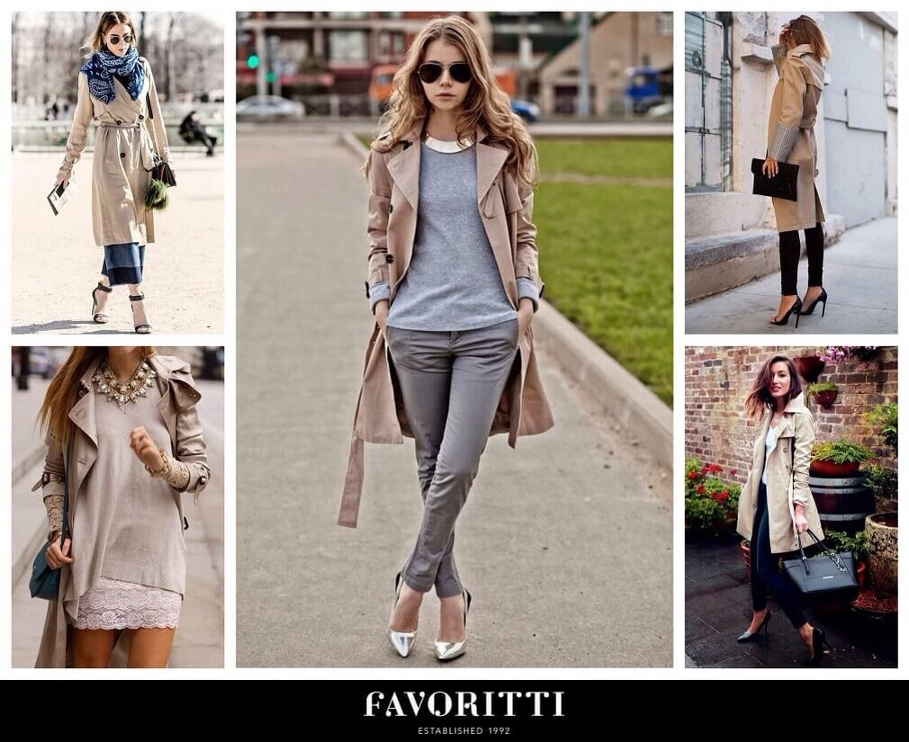 Один из самых популярных цветов для этой разновидности верхней одежды. Обдумывая, с чем носить бежевый плащ женский, обратите внимание на следующие варианты: