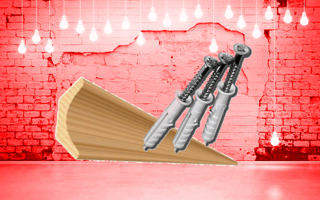 Закрепить плинтус можно по-разному. Всё зависит от его вида и материала стены. Мы рассмотрим вариант, когда плинтус надо установить к неровной стене. В этом случае использовать кляймеры (специальные скобы) не получится, поэтому будем применять сквозной монтаж. Есть два простых варианта. Крепление на дюбели и саморезы Последовательность действий следующая: 1. Приложите плинтус к самой длинной стене в помещении. 2. Отступите от края плинтуса 5-7 см и просверлите отверстие, немного войдя в стену. 3. Сделайте отверстия по всей длине плинтуса примерно через каждые 40 см. 4. Уберите плинтус и отметьте места сверления на стене. 5. При помощи дрели просверлите отверстия, прочистите их, и вставьте туда дюбели (для полнотелых или пустотелых материалов – в зависимости от основания). 6. Приложите плинтус и через отверстия в нём вкрутите в дюбели саморезы. 7. При необходимости наклейте декоративную заглушку. Готово! Крепление на дюбель-гвозди Ещё более простой способ – это сквозной монтаж на дюбель