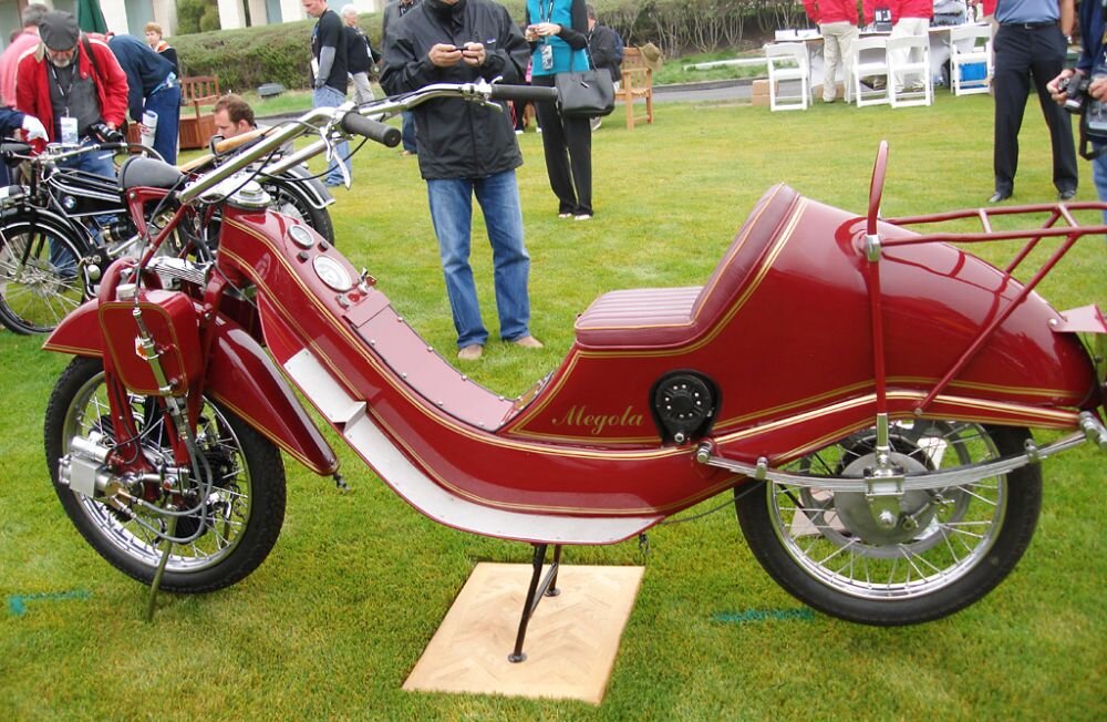 Мотоцикл с приводом на переднее колесо – сам по себе диковинная вещь, а с карбюраторным мотором, расположенном прямо в переднем колесе, даже сегодня кажется очень смелым решением. Что и говорить о начале прошлого века, когда несколько талантливых немецких инженеров создали «Меголу»…