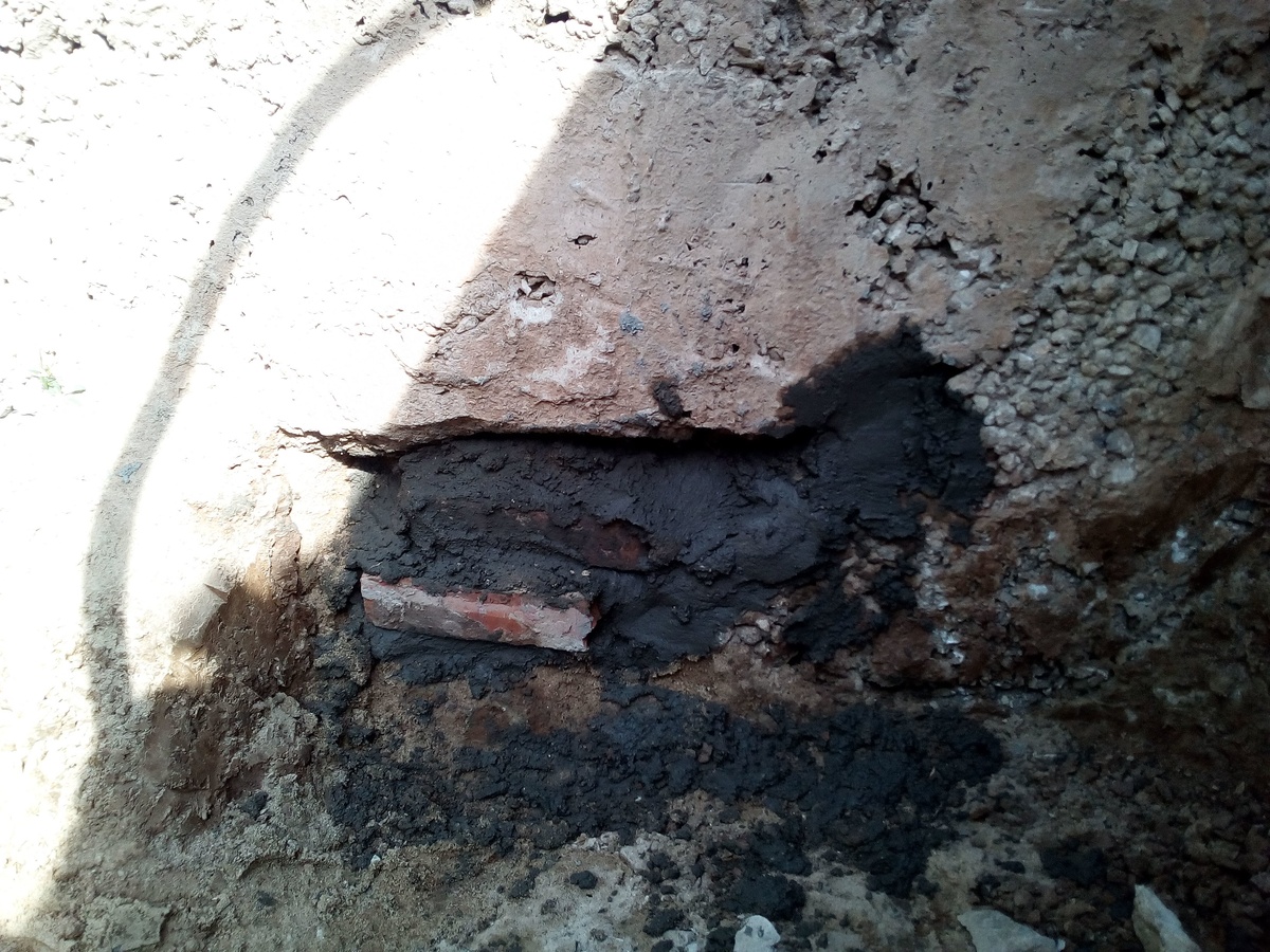Пришла пора заделать те ужасные дырки в цоколе, появившиеся от засыпания песком во время заливки. Тут рассказывать особо нечего, все просто - вычистил песок, заполнил пустоту смесью кирпичей и кладочной смеси.