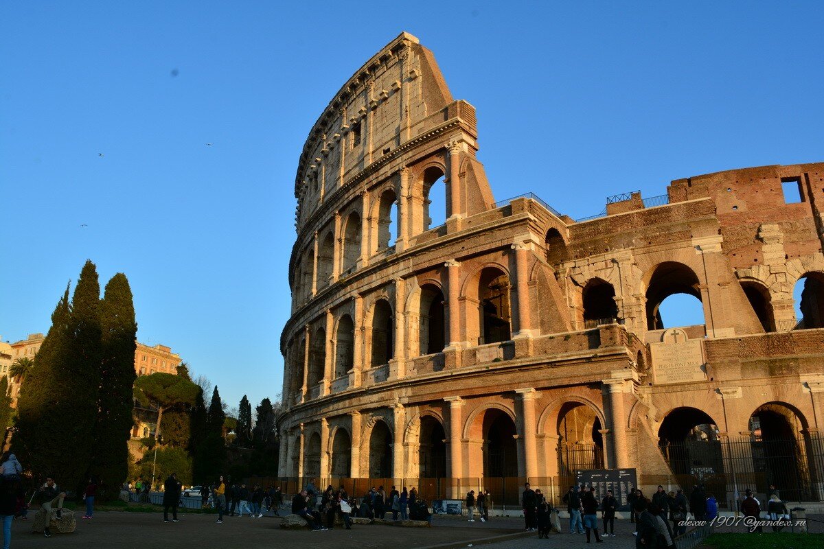 В Риме огромное количество достопримечательностей и музеев. Чтобы их все обойти потребуется большое количество времени. Многие, приехав в Рим, стараются "обежать" все эти места за пару дней, и ничего кроме усталости и нескольких фотографий от такого путешествия не получают. На мой взгляд, куда лучше неспеша посетить самые выдающиеся достопримечательности, наслаждаясь их красотой. В Рим лучше всего ехать вне сезона. Погода почти всегда теплая. Фотографии, представленные ниже, были сделаны во время моей поездки в конце января 2018 г. Днем температура добиралась и до 18 градусов, пасмурная погода была редкостью. А вот очередей в музеях особенно и не было, в том время как летом, чтобы попасть в Колизей или музей в Ватикане, нужно будет или провести несколько часов в очереди, стоя в жуткой жаре, или заплатить за дорогую экскурсию без очереди. 1. Колизей Самая известная достопримечательность Рима. Этот амфитеатр, которому почти 2000 лет, был свидетелем огромного количества гладиаторских бое