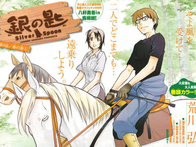И вот началось: подъём в 5 утра во время практики для ухода за животными в начале за курицами, потом на свиноферму. Одноклассники Хатикена-дети фермеров и многое умеют и знают с детства, Хатикен мучается вопросами как же можно съесть того за которым так ухаживал и выращивал; у всех есть цель для которой они учатся, а он поступил в самое далёкую от дома старшую школу; как научится ездить верхом как и Микаге, милая одноклассница и наследница фермы; как бы дотащить ноги до кровати и не уснуть на уроке.
