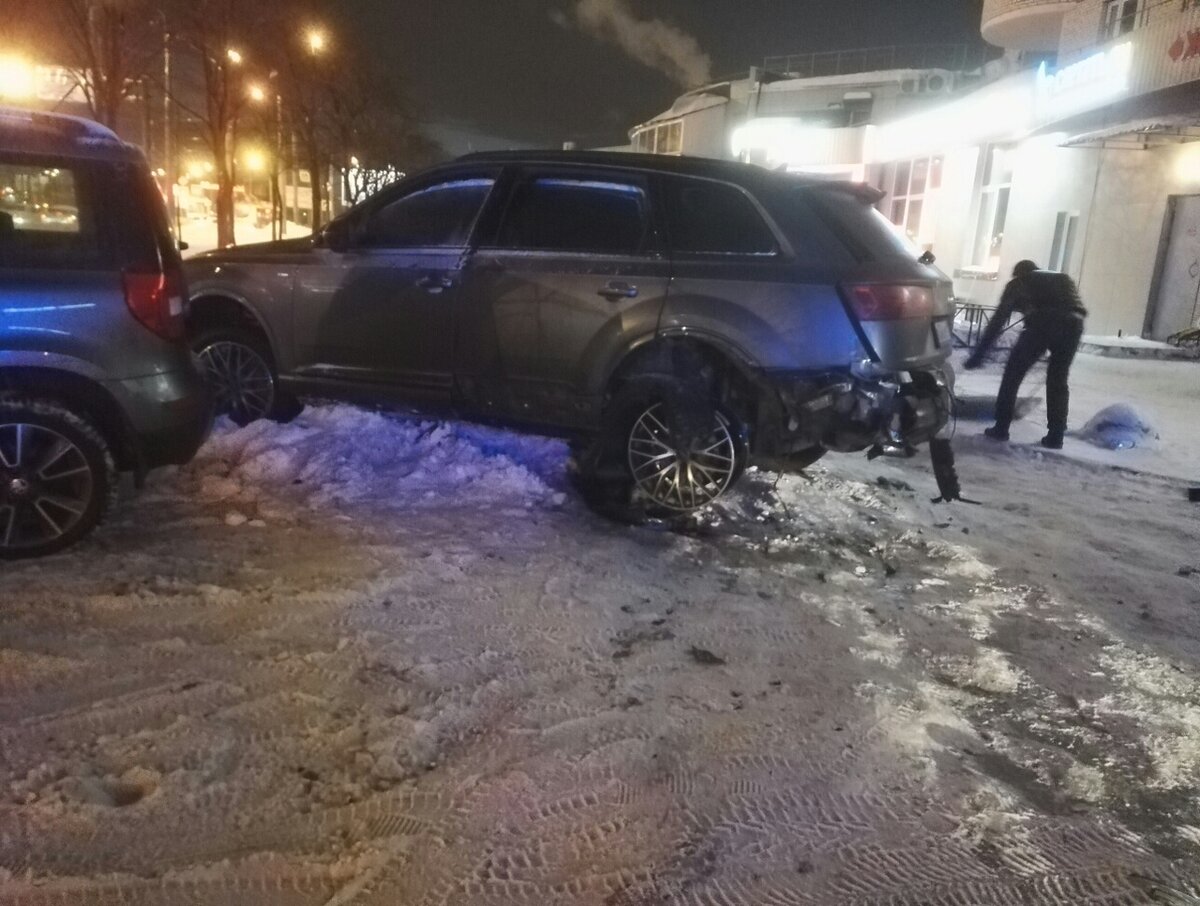 Водитель пообещал возместить пострадавшим материальный ущерб. Утром 7 февраля жители дома № 41 на проспекте Маршала Жукова в Кировском районе заметили во дворе автомобиль Audi Q7 с лопнувшим колесом и полицейский автомобили, которые перекрыли дорогу. Фотографии с места происшествия выложили в социальных сетях. Очевидцы предположили, что владелец Audi Q7 уходил от погони. Но представители ГУ МВД России по Петербургу и Ленобласти рассказали, что случилось на самом деле. Выяснилось, что рано утром автомобиль забуксовал в сугробе. Водитель пытался выехать, но в результате у автомобиля взорвалось колесо. Ошметки долетели до шестого этажа и пробили окно квартиры. В полиции также рассказали, что владелец иномарки пообещал возместить пострадавшим материальный ущерб. На этой неделе во дворе дома в Калининском районе Петербурга трактор, который чистил дорогу от снега, застрял в сугробе. Техника не могла сдвинуться с места больше часа. Фото: ДТП и ЧП | Санкт-Петербург
