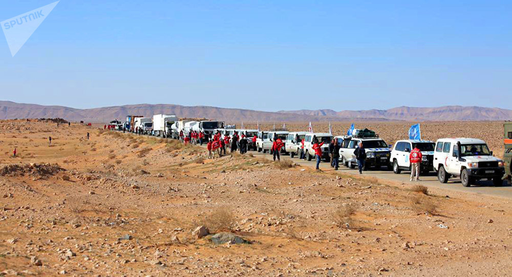 6 февраля в лагерь ар-Рукбан вошёл самый крупный в истории сирийского гуманитарного кризиса конвой Сирийского Арабского Красного Полумесяца и ООН - общее количество автомобилей достигло 165, считая машины сопровождения и логистической поддержки. Мы пообщались с пресс-службой Сирийского Арабского Красного Полумесяца и хотим поделиться некоторыми деталями. Конвой заходил в две партии - сперва 5го февраля ушла колонна из 30 автомобилей так называемой «логистической поддержки». Она зашла внутрь 55-ти километровой зоны безопасности, где, собственно, находится и лагерь ар-Рукбан, и американская база ат-Танф. Свыше сотни сотрудников ООН и САКП прибыли на день раньше для развёртывания лагеря и разбивания палаток - поскольку гуманитарная акция продлится, как минимум, неделю, сотрудники ООН и САКП подготовили лагерь для встречи колонны и распределения гуманитарных грузов. 6-го числа пошла основная колонна - её сопровождали подразделения российской военной полиции. С вечера среды по всем федераль