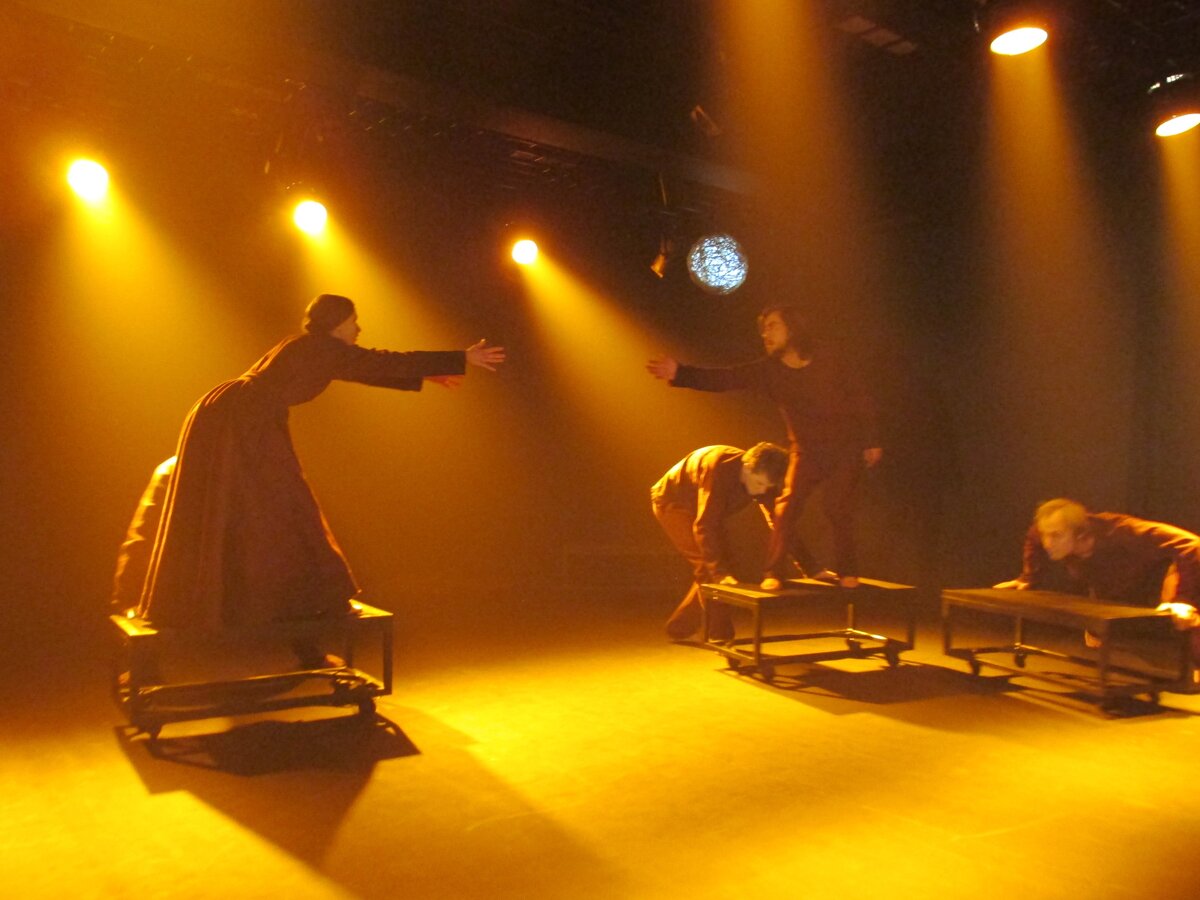 Не было четких границ, где заканчивается работа хореографа и начинается работа режиссера, художественного руководителя, актера. Мы проводили тренинги, на которых актеры раскрывались, работали с темой. Потом из этюдов формировали сцены. Это была годовая обширная работа. В конечный вариант спектакля вошла малая часть того опыта, через который мы прошли. Из всего, что придумали, можно было десять спектаклей создать.