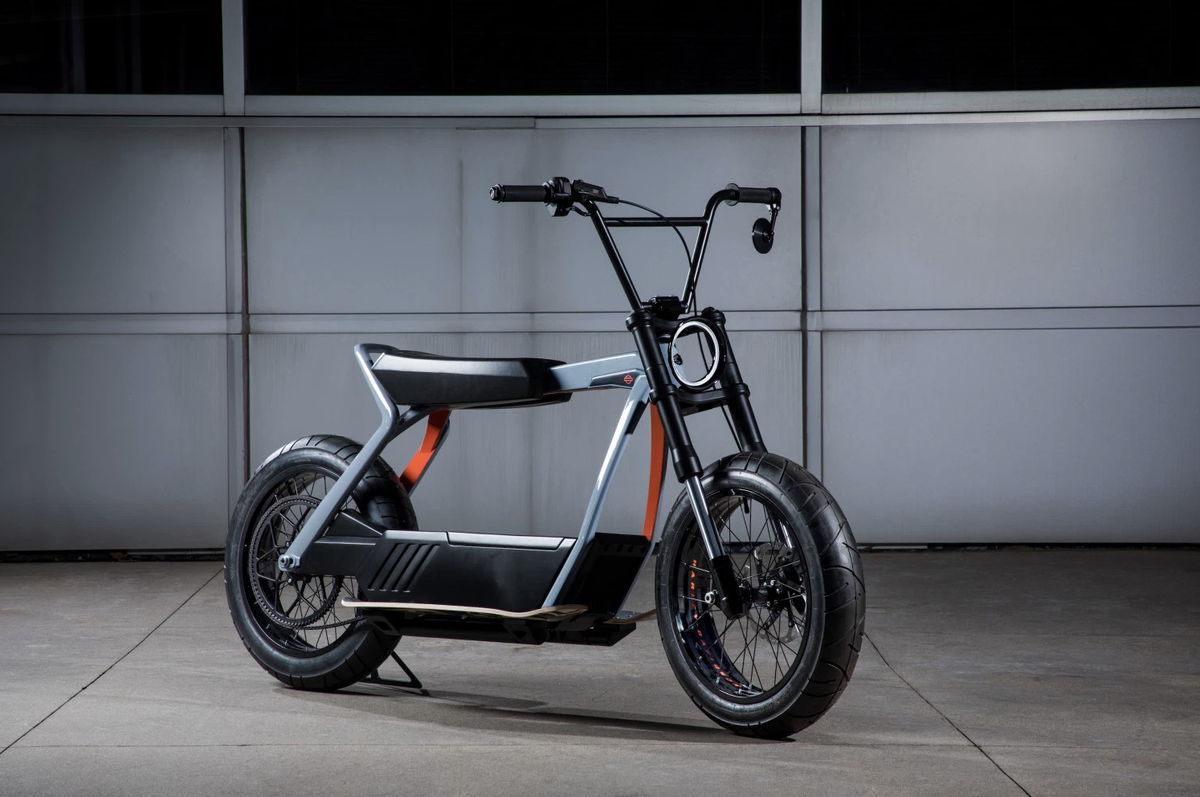 Harley-Davidson показал два прототипа: необычный электрический велосипед и электрический скутер. Вот что говорит гонщик мотокросса Джако Стронг (X-Games) после тестирования: "Это было очень весело. Это действительно впечатляет, что сделали эти ребята. Сила потрясающая. Это определенно отличается от бензинового мотоцикла, у него есть крутящий момент с нуля. Это намного удобнее для пользователя, вам не нужно беспокоиться о механизмах, и это намного проще ». Концепция все еще в форме прототипа, с обнаженной проводкой и большим количеством завязок. Показывается знакомый ременный привод, но на этот раз мы ближе знакомимся с мотором. Хотя Harley-Davidson еще не выпустил каких-либо характеристик о мощности двигателя, очевидно, что это не стандартный двигатель для электро велосипеда мощностью 1000 Вт. Вероятно здесь двигатель средней мощности 3-5 кВт. Концепция электрических скутеров Harley-Davidson Пока электрический байк рвал снег, Harley-Davidson также тестировал концепт электрического