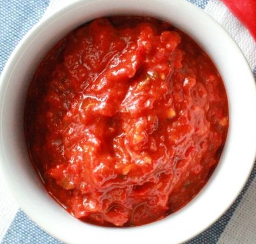 Такая аджика невероятно вкусна, вкус свежий, яркий и насыщенный. Делается она очень просто, и даже может храниться в холодильнике до 1 месяца. Ингредиенты: Паста томатная натуральная - 1 килограмм Чеснок - 2 головки Смесь из сушеных трав - 2 столовых ложки Вода кипяченая холодная 200 миллилитров Перец красный острый молотый - 1,5 чайных ложки Перец черный молотый душистый - 1 чайная ложка Состав для смеси сушеных трав: 1 упаковка сушеного укропа 1 упаковка сушеной петрушки 1 упаковка сушеного сельдерея 1 упаковка сушеного молотого имбиря 1 упаковка сушеных молотых листьев кинзы 1 упаковка сушеного молотого чеснока Готовим: Томатную пасту перекладываем в посуду на 1,5-2 литра. В такой посуде легче будет перемешивать. Добавляем воды. Добавляем свежий измельченный чеснок, перцы, смесь сухих трав. Тщательно перемешиваем. Перекладываем в подходящую банку, накрываем крышкой. Все, аджика готова! Зацените! Вам точно понравится!