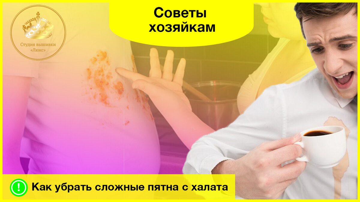 Все мы чистюли, но бывает так, что случайно испачкаем нашу любимую одежду. В этот миг нас накрывает волна грусти и отчаяния. Мы начинаем искать способы избавиться ит злополучного пятна, который портит нам настроение. Но так как в каждом из нас живет маленький еврей, нам жалко тратить деньги на дорогую химчистку, поэтому ищем как избавиться от сложных пятен в домашних условиях. Убираем сложные пятна с халата! Все виды пятен мы разделили на категории и выделили три часто встречающиеся. Кофе, жир и фрукты ( соки) - а с чем столкнулись вы? Выводим кофе, чай, вино. Данные пятна выводятся соленым раствором. Необходимо размещать ПЯТЬ столовых ложек соли в ПЯТИ литрах воды. Опускаем в раствор проблемную ткань, чтобы она замочилась. После стираем в стиральной машине. Как убрать пятно с жиром? Если ваша одежда или халат столкнулись с жирным пятном, то на помощь идет хозяйственное мыло или средство для мытья посуды. Необходимо обильно смазать проблемный участок и упаковать его в пакет. Выжидаем
