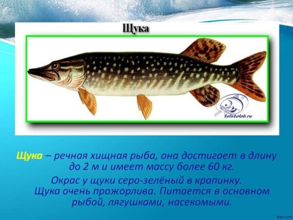 12. Щука заглатывает жертву только с головы. В том случае, если она схватила её поперек тела, то перед проглатыванием она быстрым движением поворачивает жертву в глотку головой. Для отслеживания добычи щука использует боковую линию и зрение. Особенно хорошо у щуки развита боковая линия в области нижней челюсти.