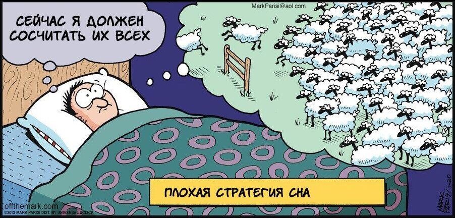 Третье, что вам мешает спать, как вы уже догадались, это мозг — ваши тараканы в вашей же голове! Не нужно по ночам организовывать для них конференцию и терпеть их аплодисменты стоя по каждой случайно посетившей вас мысли. Спать — это не значит думать!