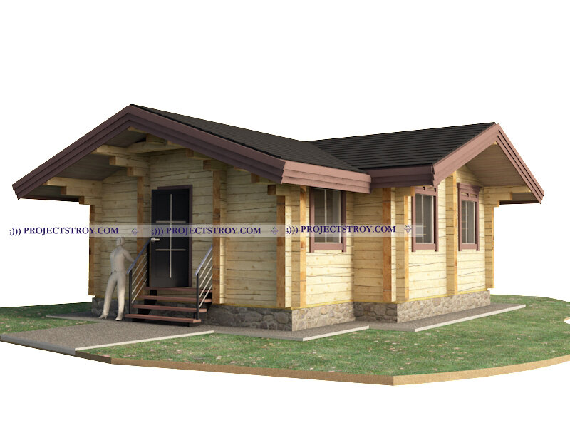 Одноэтажный деревянный дом по осям 7.8 х 7.4 м - 46 кв. м