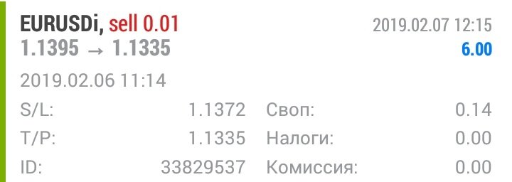 Сегодня не одной позиции открыто небыло. Держал открытой вчерашнюю сделку. Таким образом за два дня получилась одна сделка. Принесла она 60 пунктов плюсом. Вход считаю был неплохой. Ну а прибыль составила 1,5% от суммы счета. Пока продолжаю наблюдать, искать ситуации. Всем успехов в торговле.