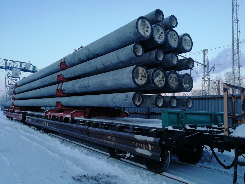 Прием, выгрузка сцепа с железобетонными столбами. Возврат турникетного оборудования на универсальной ЖД платформе.