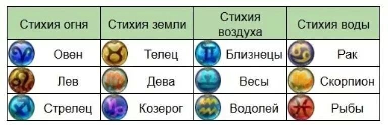 Разделение по стихиям раскрывает определенные характеристики знаков зодиака, которые позволяют извлечь новую информацию в очень интересном представлении. Благодаря появлению общих признаков анализ и последующий прогноз жизненной энергетики человека получается более глубоким и широким.