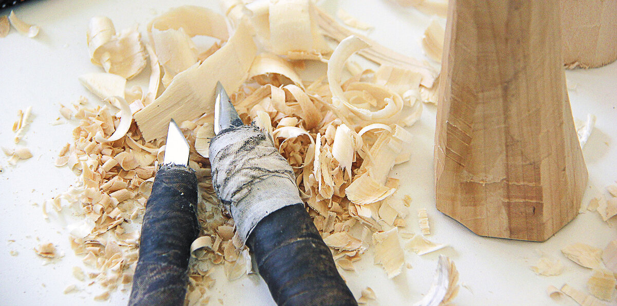 В сгущающихся октябрьских сумерках за окном растворяется поселковая жизнь – брешут собаки на редких прохожих, катит мальчишка в шапке-ушанке на велике, кто-то из соседей колет дрова. Тишину комнаты, погруженной в полумрак, нарушают только скрип резца, изготовленного самим мастером, и наша неспешная беседа.