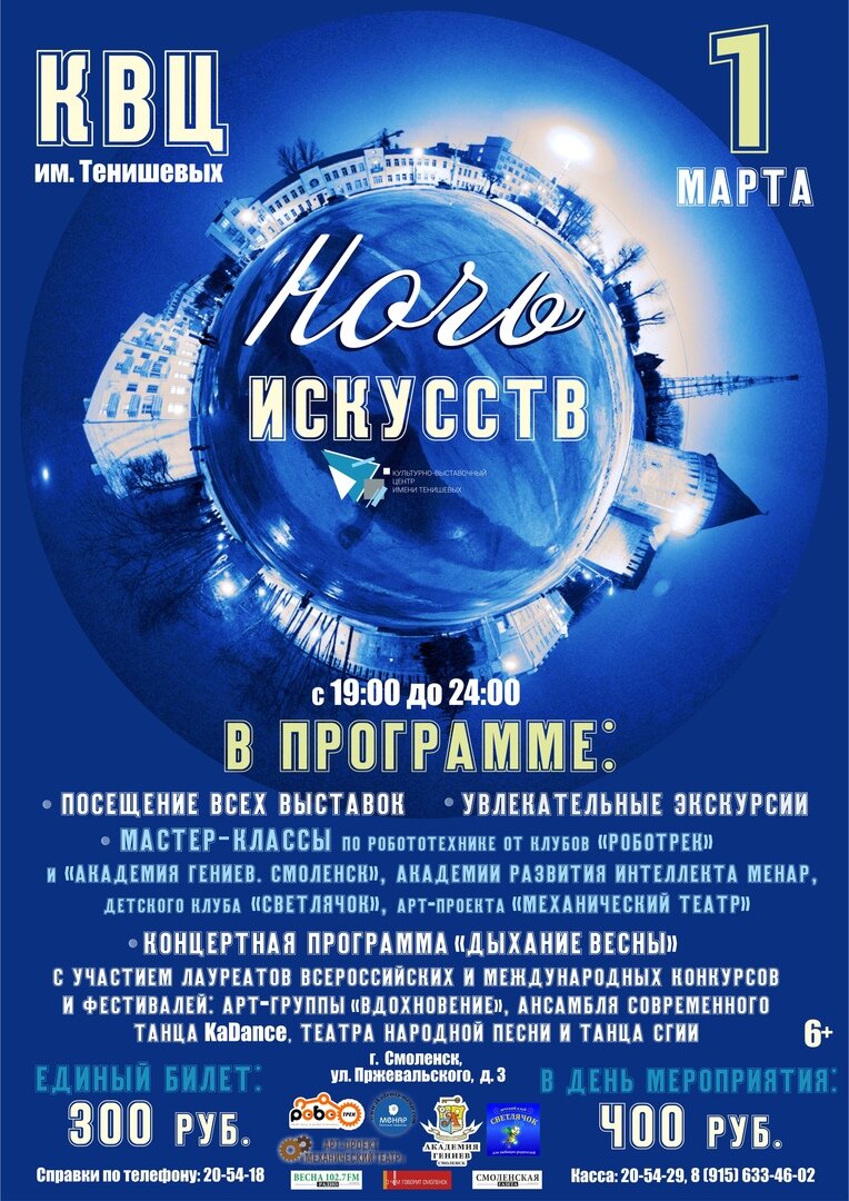 Культурно-выставочный центр имени Тенишевых приглашает всех любознательных и неспящих посетить 1 марта с 19.00 до 24.00 «Ночь искусств» — яркое событие в культурной жизни города.