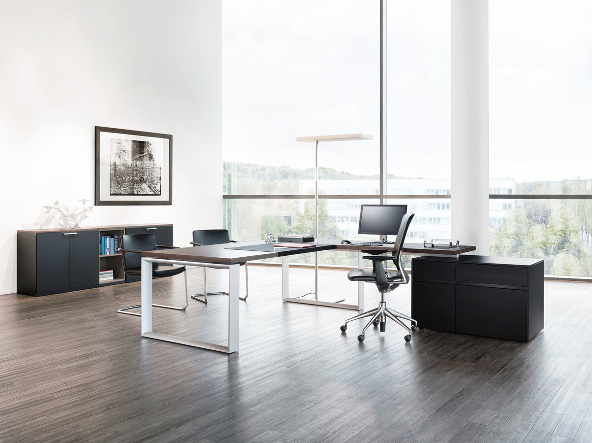 Минимализм прекрасно подходит почти любому офису, если только это не офис дизайнеров или кинорежиссеров. Впрочем, и тут бывают исключения. Чем так хорош этот стиль? Он создает ощущение чистоты, спокойствия и легкости. Для него характерны правильные пропорции, геометрические линии, лаконичный дизайн и спокойные оттенки. Как правило, основной цвет — белый (либо его вариации): им оформляют стены, пол и потолок, а для выделения контуров используют более темный, насыщенный цвет. Мебель Кресла, столы и стулья, в первую очередь, должны быть удобными и гармонировать с интерьером в целом, то есть быть пастельных оттенков (бежевый, слоновая кость, песочный), при этом быть немного темнее основной цветовой гаммы. Материалы Лучше всего в минималистичный стиль вписываются кожа, экокожа и ткань, которая хорошо устойчива к загрязнениям. Можно добавить немного стекла: полки, столешница. Декор Украсят офис в стиле минимализма современные скульптуры из дерева, металла, пластика или стекла. Также хорошо