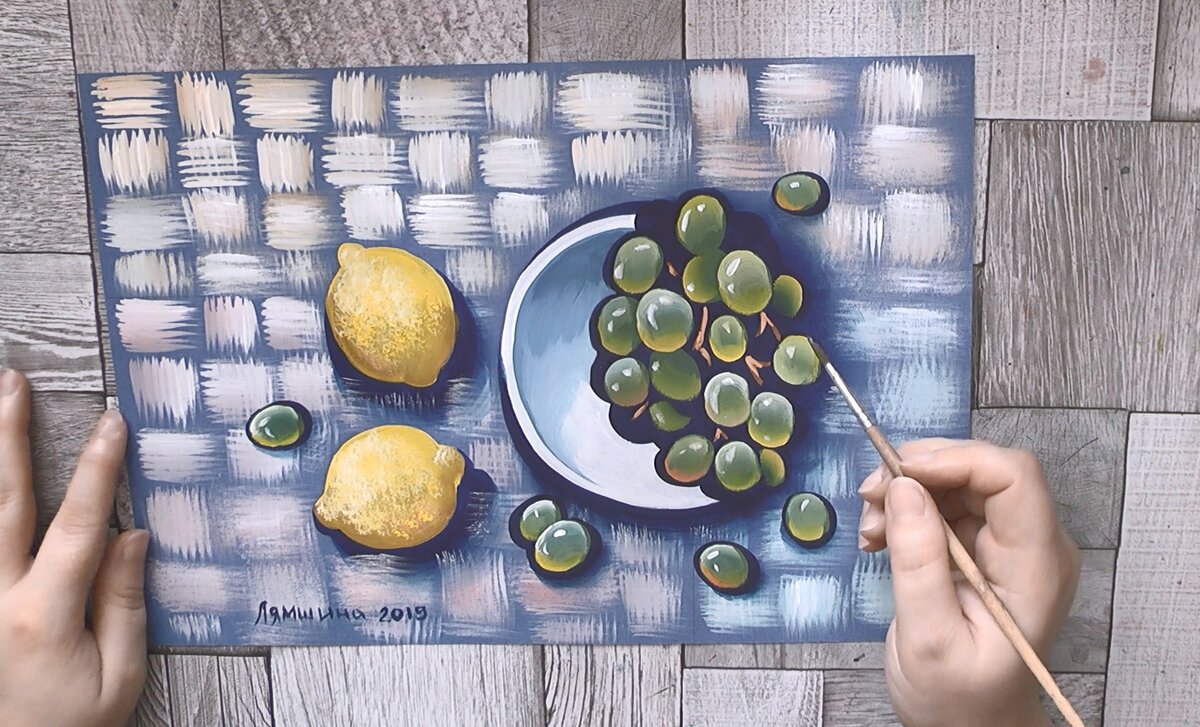 Мы создадим декоративный натюрморт с сочными фруктами. Вы узнаете, как легко нарисовать красивый текстурный фон.