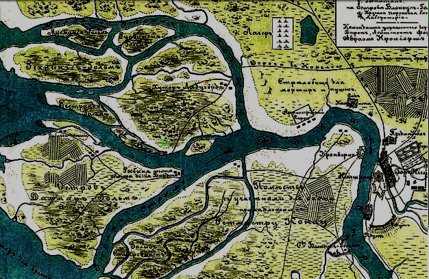 Часто возникает вопрос – что же было раньше на месте нашего любимого Петербурга? Были ли здесь пустынные болота и равнины, или кипела жизнь? Не редко на эту тему начинаются бездоказательные и лженаучные спекуляции, уводящие в никуда. Опираясь на старые карты, расскажу и покажу конкретное место, откуда и начался наш город. Карта 1698 года, когда земли будущего Петербурга находились под шведским владычеством: Что здесь? Обжитая местность и город Ниен с оборонительным сооружением – шестиугольной крепостью Ниеншанц. Между прочим, это был довольно крупный по тем меркам город, с населением около 2 тысяч человек (в 1650-х годах, а потом выросло еще). Ниен был знаменит своими лесопильными и кораблестроительными производствами. Удачное расположение вблизи моря и крупной реки позволяло проводить в нем ярмарку, которая привлекала заинтересованных людей из соседних Северных стран. Тут были и лечебные заведения, и церкви, и ратуша. Где сейчас находится Смольный был православный храм. Наложение со
