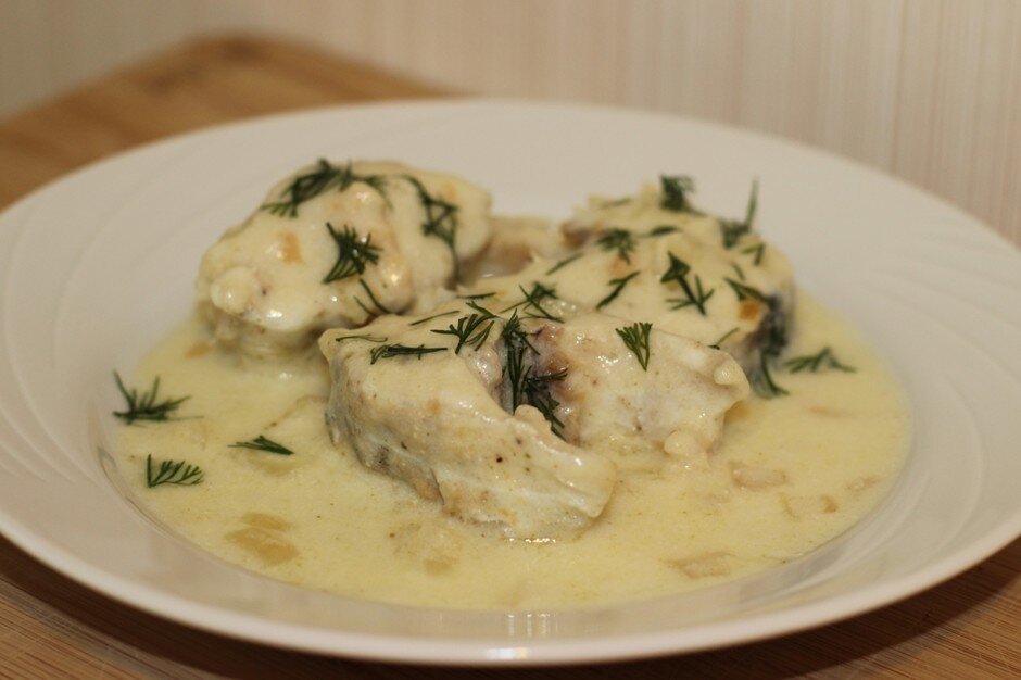 Растительное масло Рыбу чистим и разделываем на филе, чтобы не было костей. Филе нарезаем небольшими кусочками. Если возиться с разделыванием на филе нет времени или неохота, то просто нарезаем кусочками. Смешиваем муку с черным молотым перцем и обваливаем рыбу. Если хотите, то можете добавить любые специи, которые нравятся. Кусочки минтая обжариваем на растительном масле на сковороде с двух сторон до образования румяной корочки. Если жареное вы не едите, то минтай можно не обжаривать, а запечь в духовке либо просто потушить. Теперь к рыбе добавляем сметану, соль и измельченный чеснок. Его пропускаем через пресс либо мелко рубим. Аккур