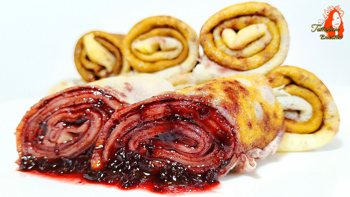 Начиняем по желанию! По желанию их можно смазать любым вареньем, я использовала смородиновое. К этим блинам подойдёт любая начинка, будь то мясная или творожная, сладкая или несладкая.
